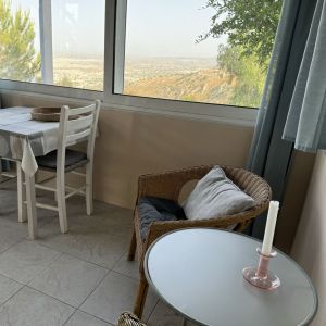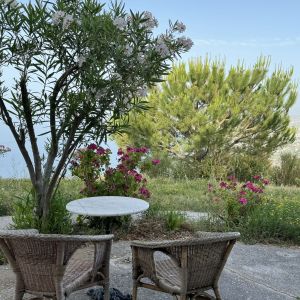 There is a covered terrace outside with café set where you can sit and enjoy the silence and views of the beautiful grounds, Heraklion city and the Mediterranean Sea.