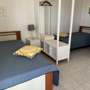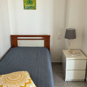 The apartment is furnished with 2 single beds, bedside tables, wardrobe arrangement, small kitchen with 2 hotplates, and shower/toilet.