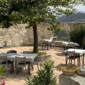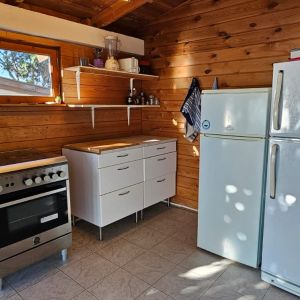 In a separate house there is a kitchen with a professional gas hob and electric oven. There is a separate entrance to the room containing two toilets and a shower. Outside there is a large, cosy café area with tables and chairs.