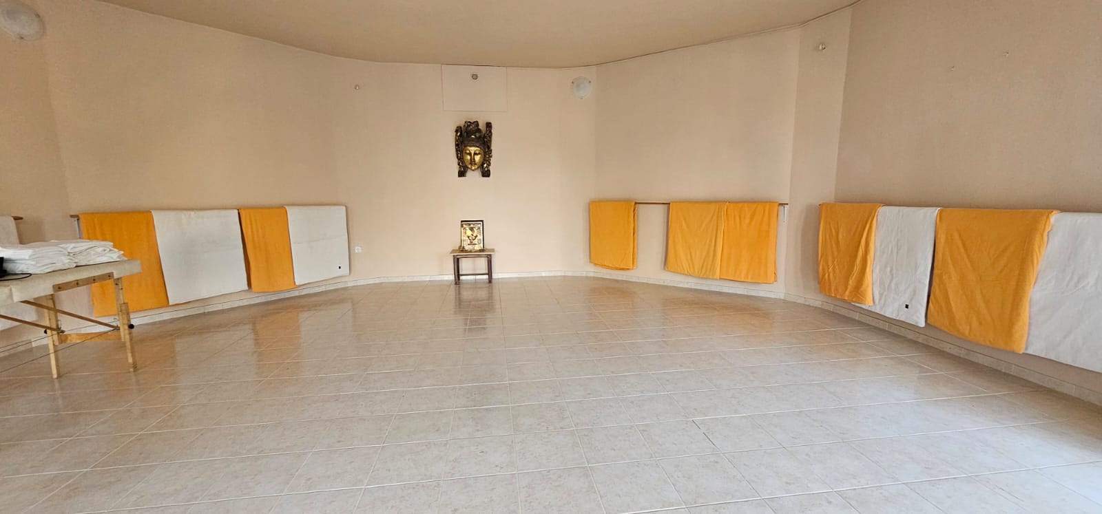 It is up to the individual course- or retreat holder to equip the temple as you like. It may be with sound, furniture, lights, flowers or other decorations.